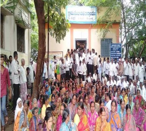 Farmers, who were facing the threat of being displaced by the proposed Pharma hub in Nyalkal mandal, on Wednesday detained Dappur village panchayat secretary Jai Singh and Nyalkal MPDO Suresh in the panchayat office at Dappur on Wednesday.